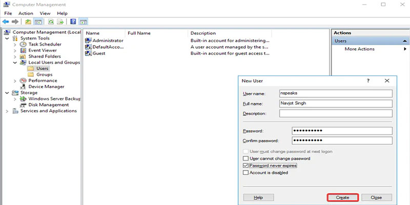 در نهایت پس از وارد کردن اطلاعات و تنظیمات مورد نظر خود، گزینه Create را انتخاب کرده تا اکانت کاربری جدید ایجاد شود.